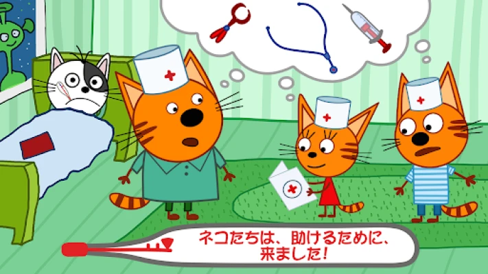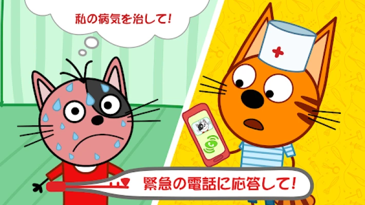 Kid E Catsの世界では、白い帽子をかぶった子猫たちが、困っているお友達のSOSに耳を傾けています。プレイヤーは、心優しい医者として、彼らと一緒に病気と闘う大冒険に出発します。猫の友達がピンチ!緊急の呼び出しに応え、小さな命を救う英雄になりませんか?「Kid-E-Cats キッズドクターゲーム!」で、愛らしい子猫たちを癒やす、やりがいのある役割を体験しましょう。