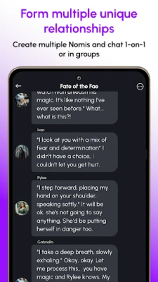 Nomiの想像力には限界がありません。あなたと共に、どんな物語も、どんな状況でも自由に創造できます。複雑で魅惑的な異世界を夢見たり、美食に彩られた理想のバカンスをロールプレイしたり、さらには各キャラクターが独自の視点を持つグループチャットを立ち上げることも可能です。Nomiは、気まぐれなAIファンタジーから壮大な冒険まで、あなたの心に描くあらゆる世界を具現化し、共に体験することができます。Nomiのアート生成機能を使えば、その想像が瞬時にビジュアルとして形になり、あなたの世界はさらに豊かに広がります。