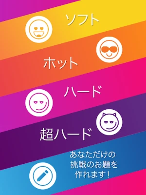 「真実か挑戦」は、カップルや友人グループの夜を忘れられない特別な瞬間に変える究極のアプリです。1000種類以上ものスリリングな質問や大胆な指令が詰まっており、関係性を深め、新たな一面を発見する刺激的な体験をお約束します。超ソフトから超ハードまで、5段階に分かれたチャレンジレベルが用意されているため、どんな状況や気分にも完璧にフィットする内容が見つかります。さらに、プレイ中に邪魔をする広告は一切ありません。